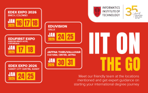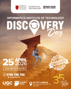 At IIT, we offer UK degrees in Computing and Business that prepare students to succeed in today’s fast-changing world. For over 30 years, we have shaped higher education in Sri Lanka, combining academic excellence, innovation, and industry relevance. With more than 5,000 alumni building careers locally and globally, IIT is the trusted choice for ambitious students who want an education that opens doors and creates lasting opportunities.